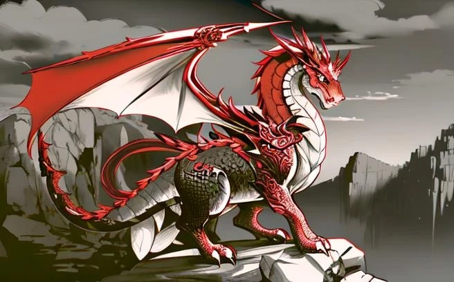 Red and White Dragon Illustration