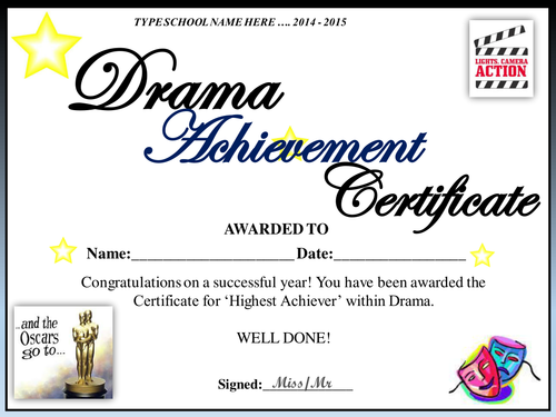 Drama Achievement Certificate Template TheRoyalStore