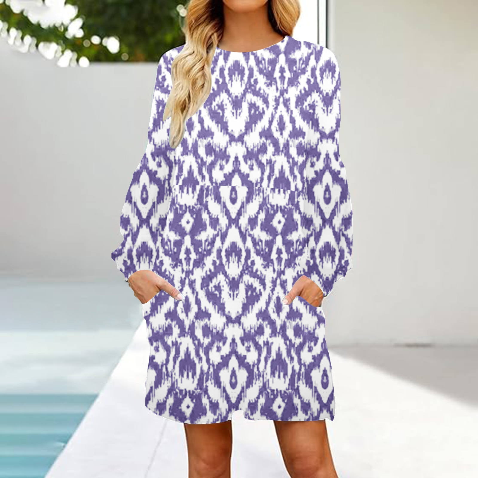 Cmfcve Women #39 s Shirt Dress Long Sleeve Round Neck Knee Length Work