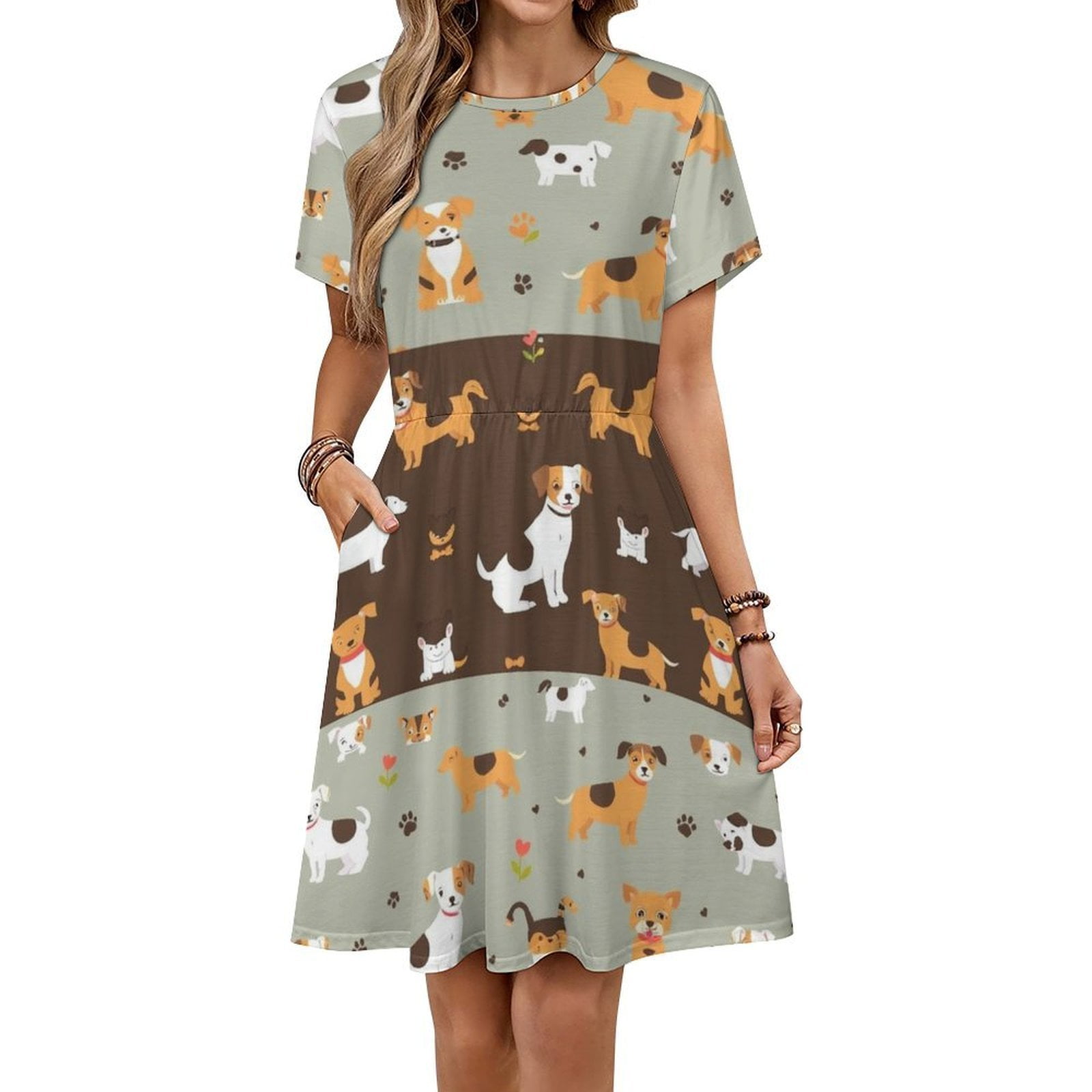 Cute Puppy Patterns Short Sleeve Dress Summer Women Clothes Dress for