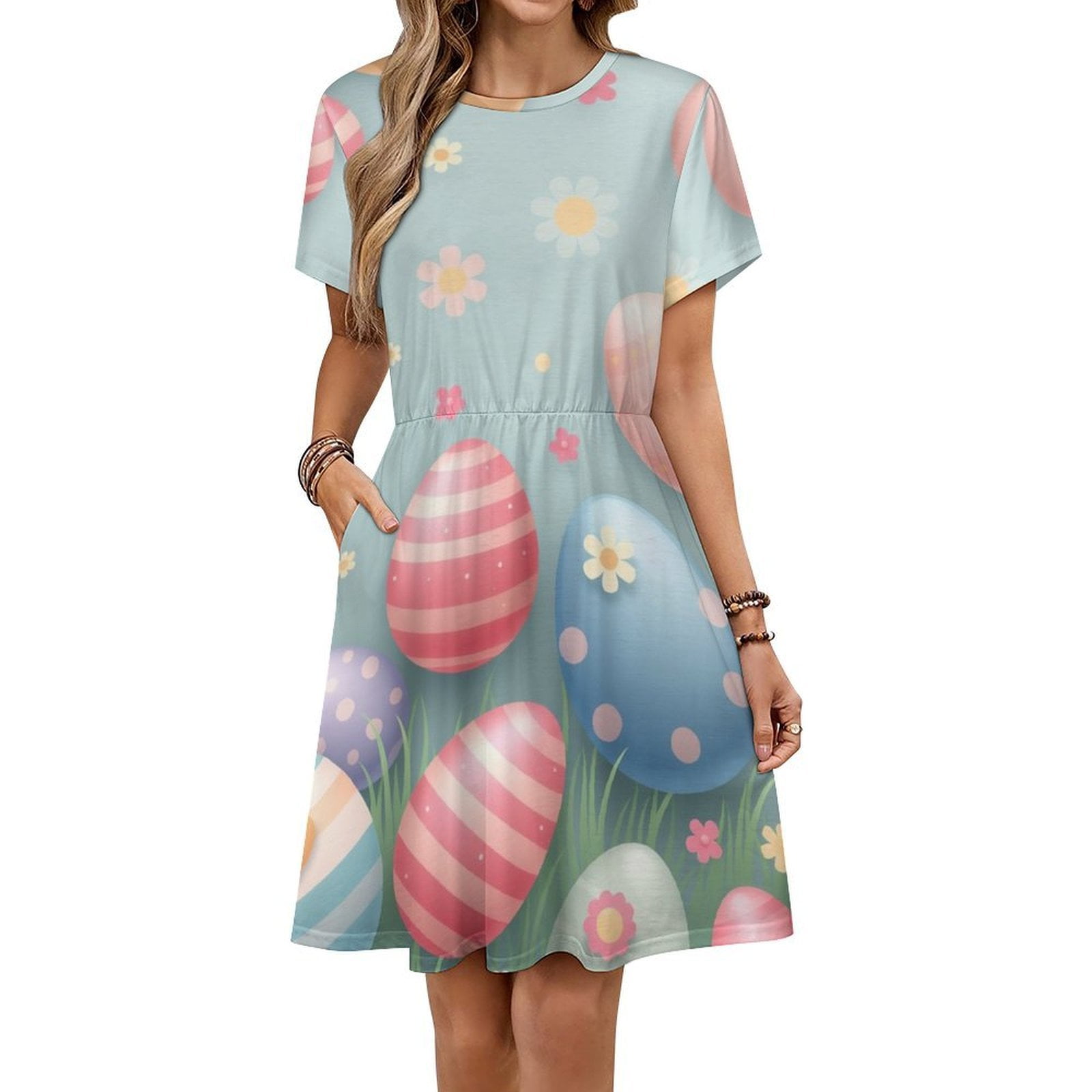 Easter Egg Background Short Sleeve Dress Summer Women Clothes Dress for
