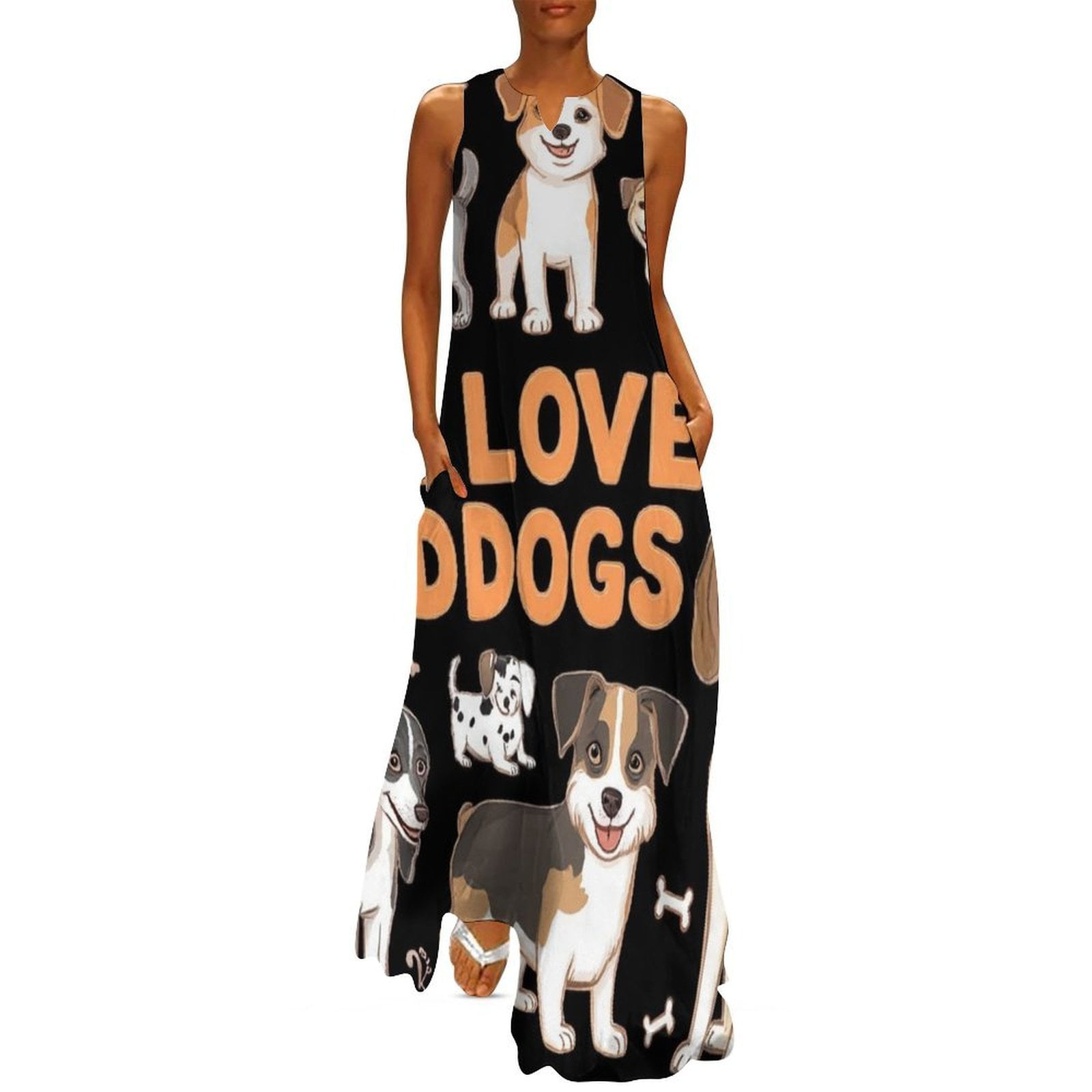 I Love Dogs Print Long Dress Women #39 s summer dress women #39 s evening