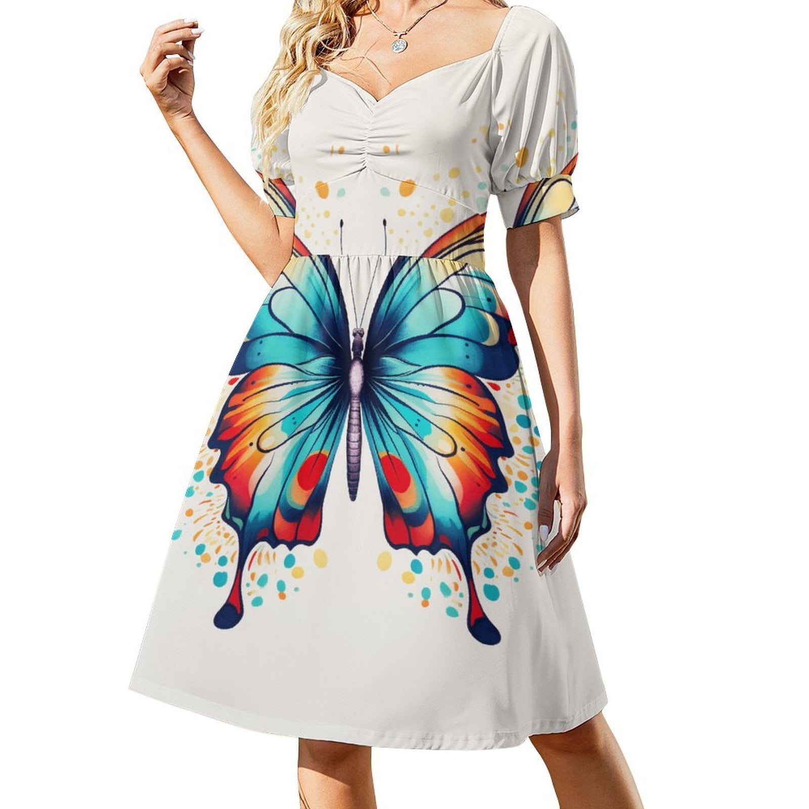 Watercolor Butterfly Short Sleeved Dress Elegant And Pretty Women #39 s