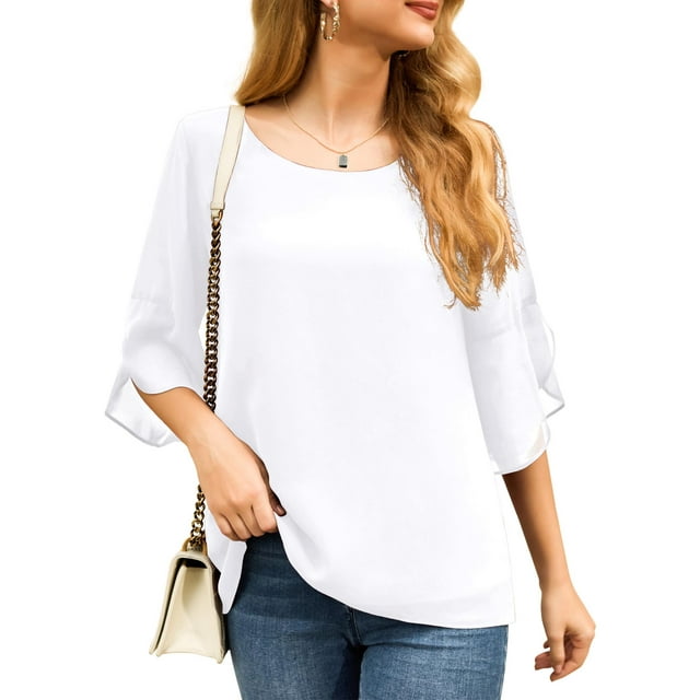 Anygrew Womens Casual Scoop Neck Dressy Blouses 3/4 Sleeve Business