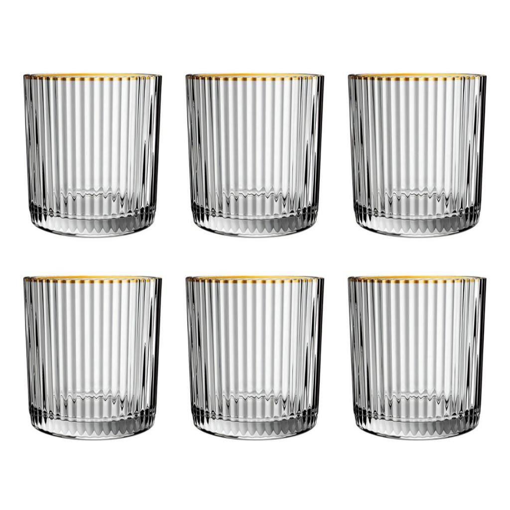 Jogo 6 Copos Baixo Transparente 256ml Borda Dourada Graffiato (Perfeito