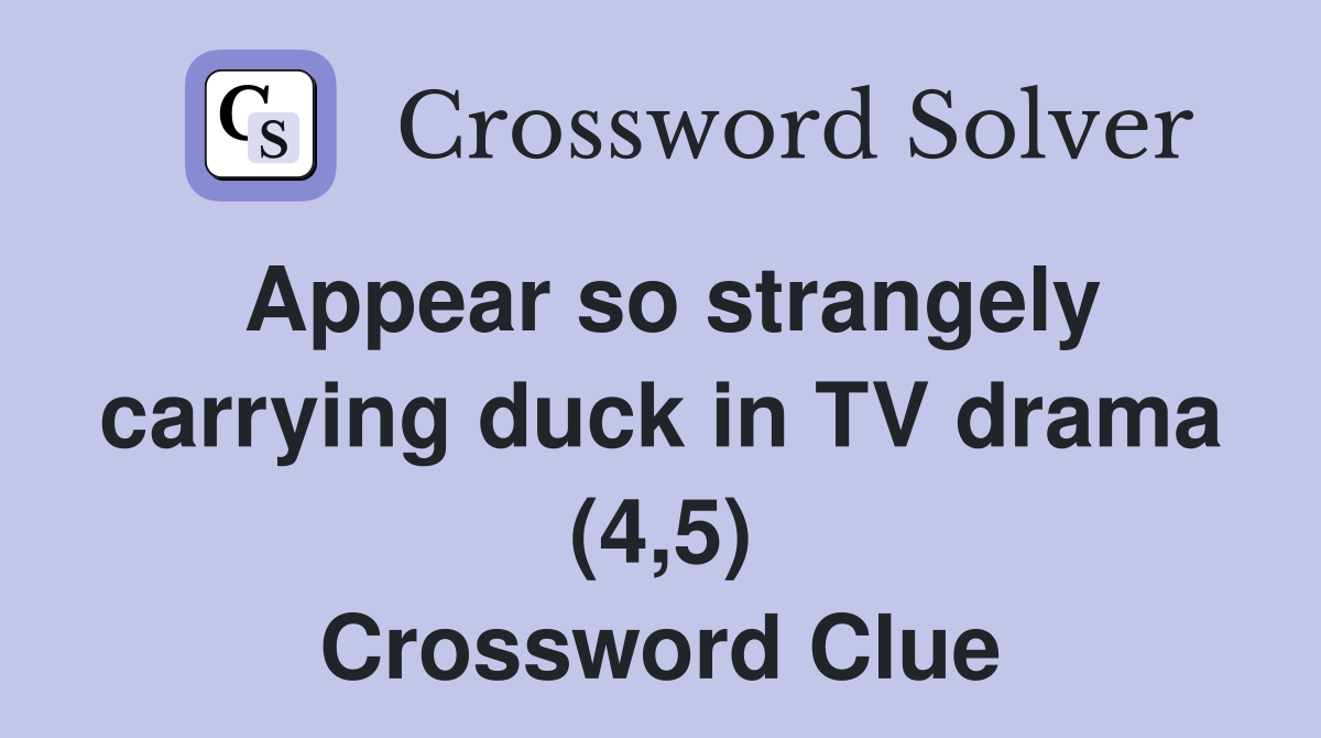 Appear so strangely carrying duck in TV drama (4 5) Crossword Clue