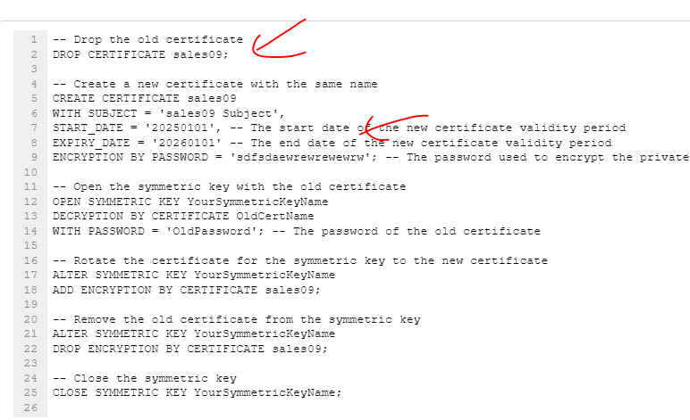 how to / test to rotate a defined SQL 2019/2022 certification for
