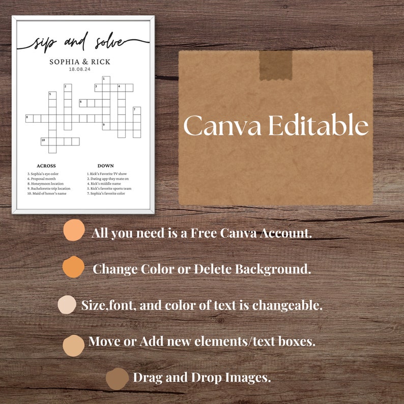 Custom Wedding Puzzle Game DIY Crossword Template Printable Reception