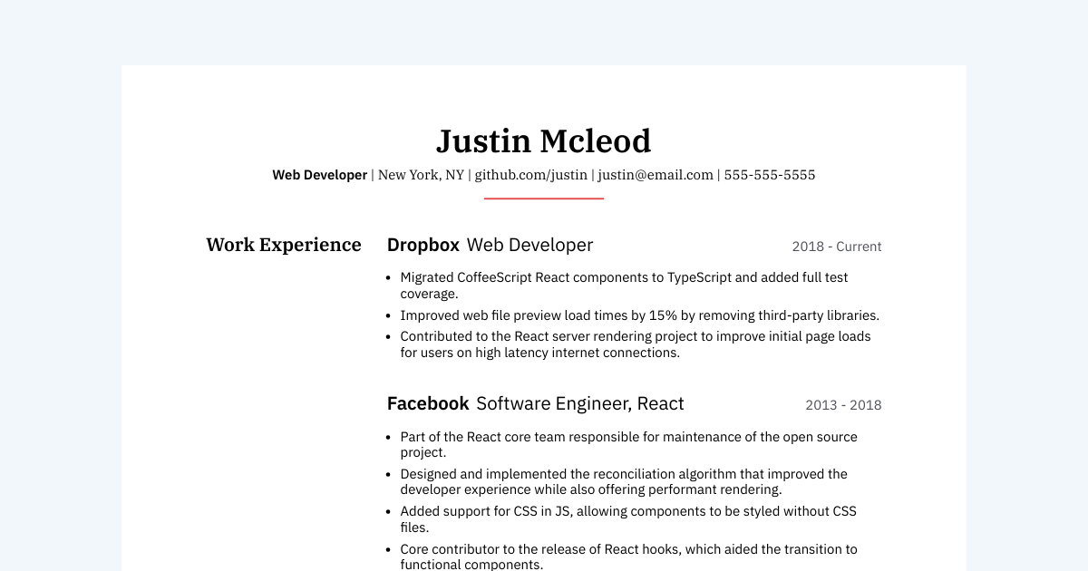 Justin Mcleod #39 s Resume Web Developer at Dropbox