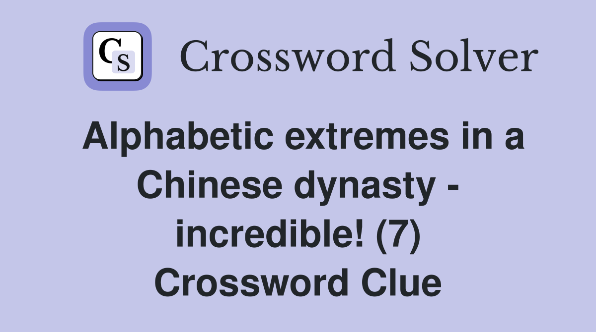 Alphabetic extremes in a Chinese dynasty incredible (7) Crossword