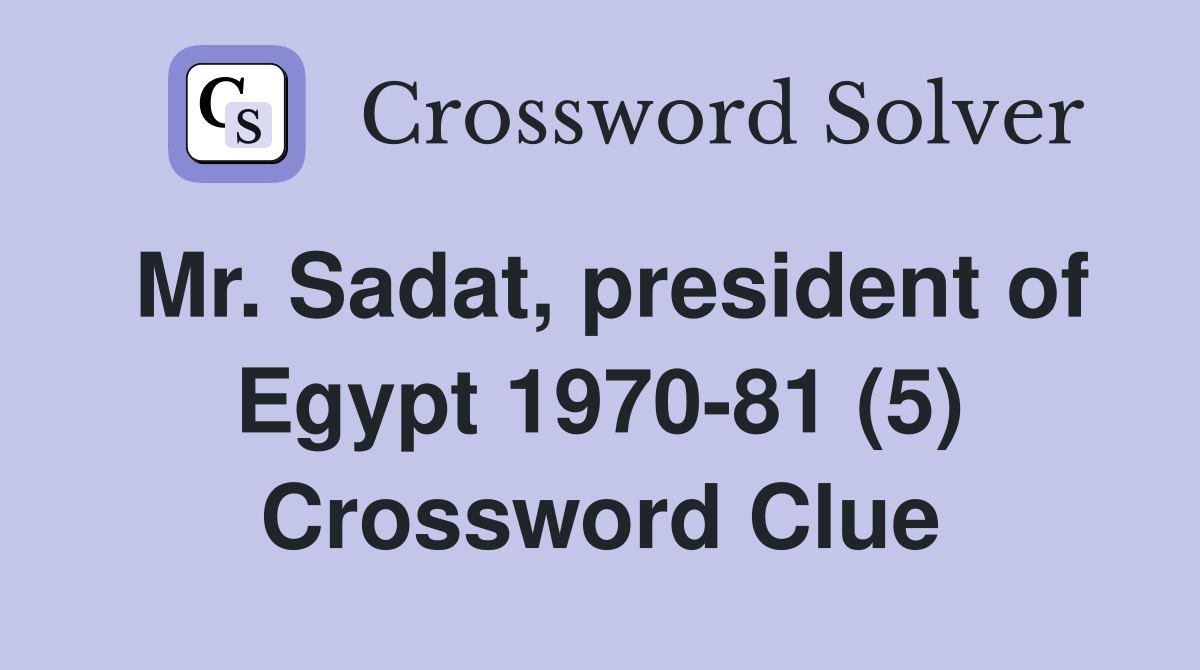 Mr Sadat president of Egypt 1970 81 (5) Crossword Clue Answers