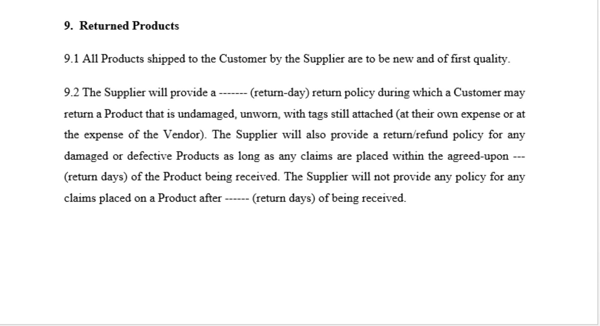 Dropshipping Contract Template