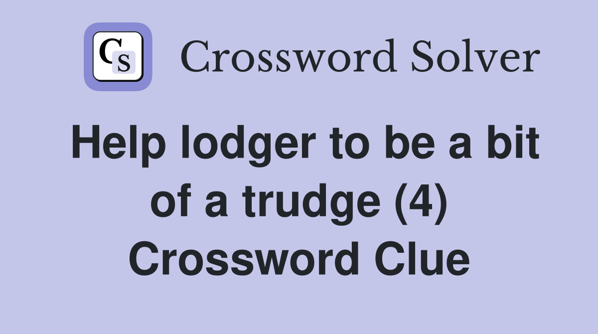Help lodger to be a bit of a trudge (4) Crossword Clue Answers