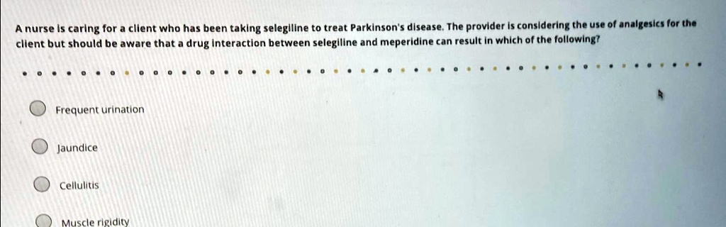 a nurse is caring for a client who has been taking selegiline to treat