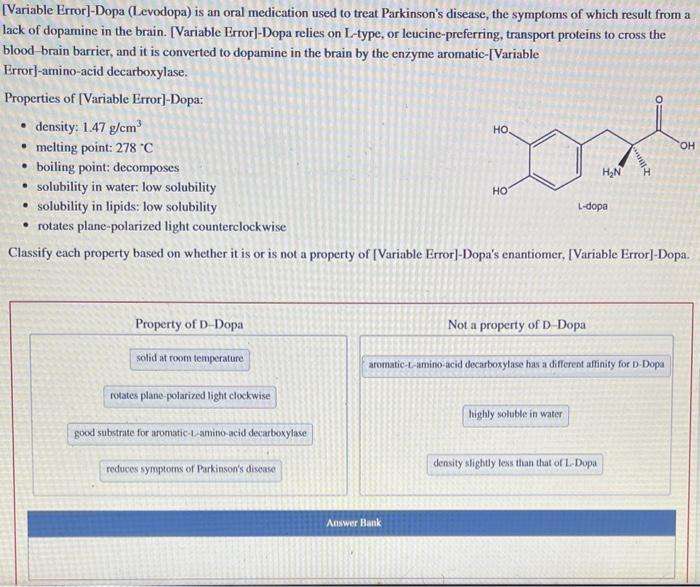 Solved Variable Error Dopa (Levodopa) is an oral Chegg com
