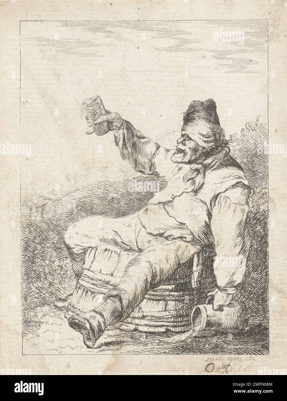 Drunk man sitting on a barrel Sophia Wilhelmina Evans 1782 print