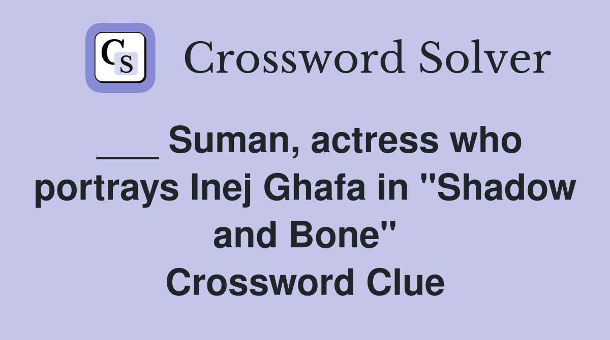 Suman actress who portrays Inej Ghafa in quot Shadow and Bone quot Crossword