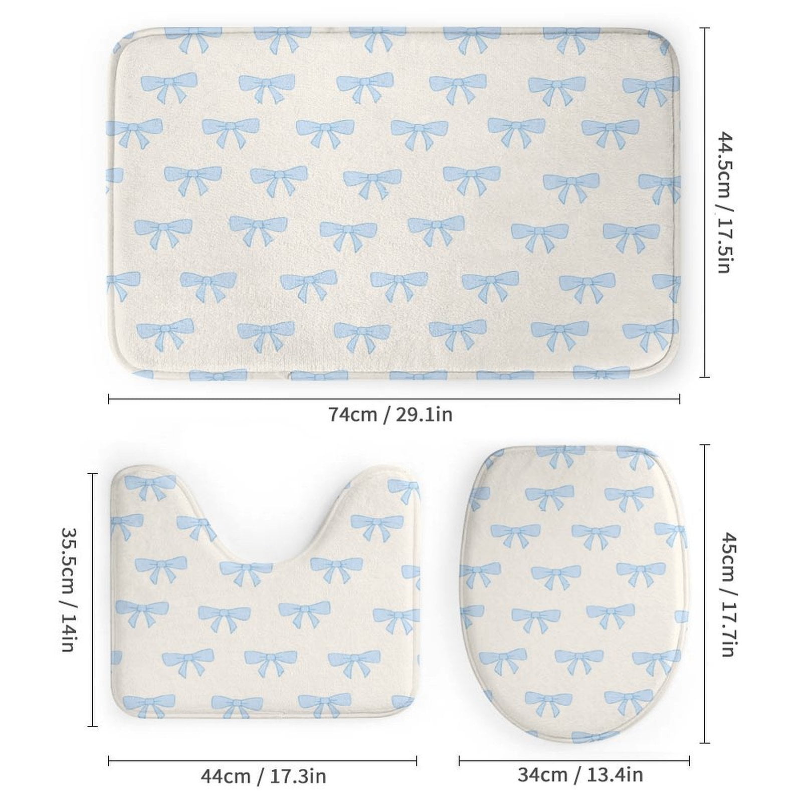 Blue Bow Pattern Bathroom Mats Sets 3 Piece Bath Mat Earth Quick Dry