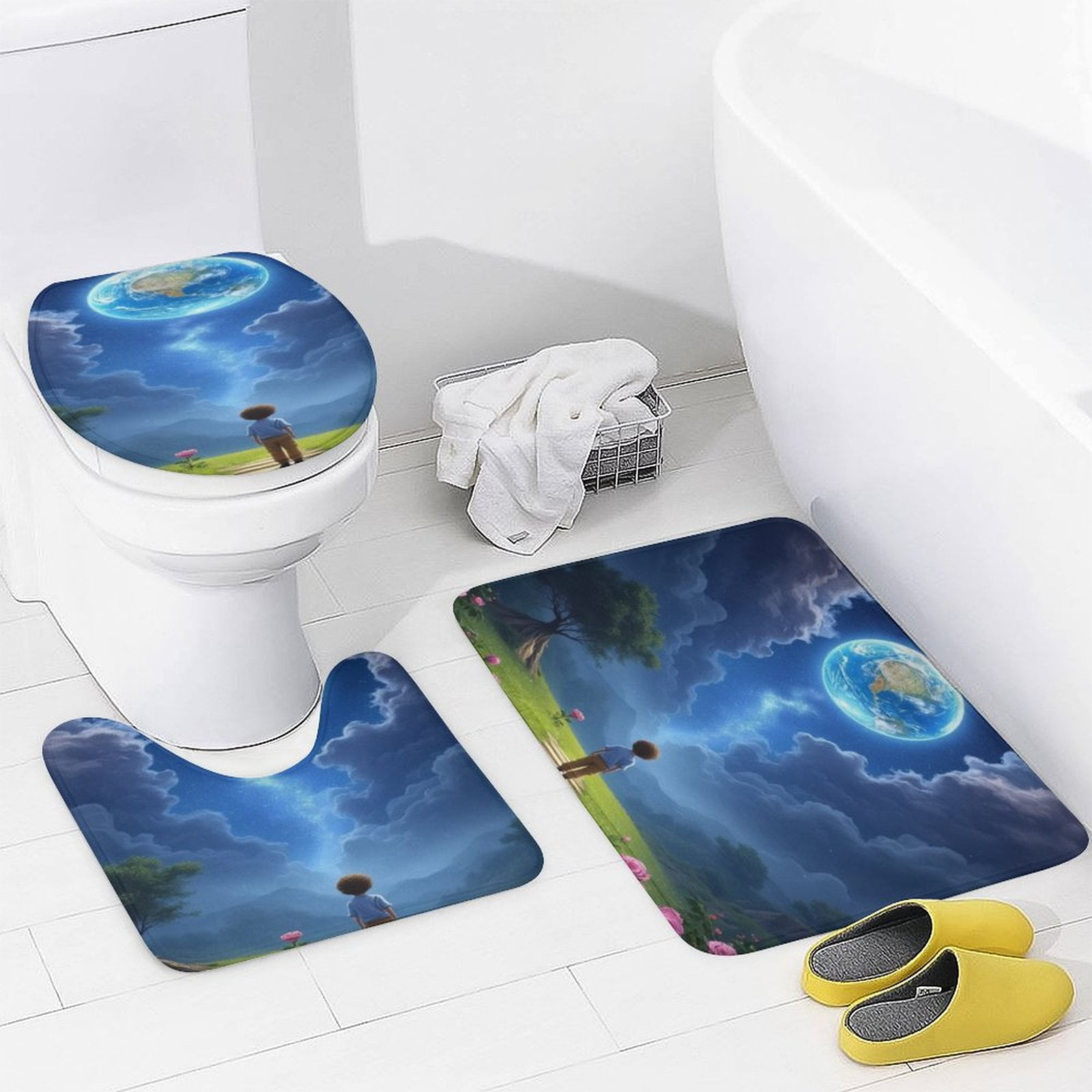 Boy Watching Earth Bathroom Mats Sets 3 Piece Bath Mat Earth Quick Dry