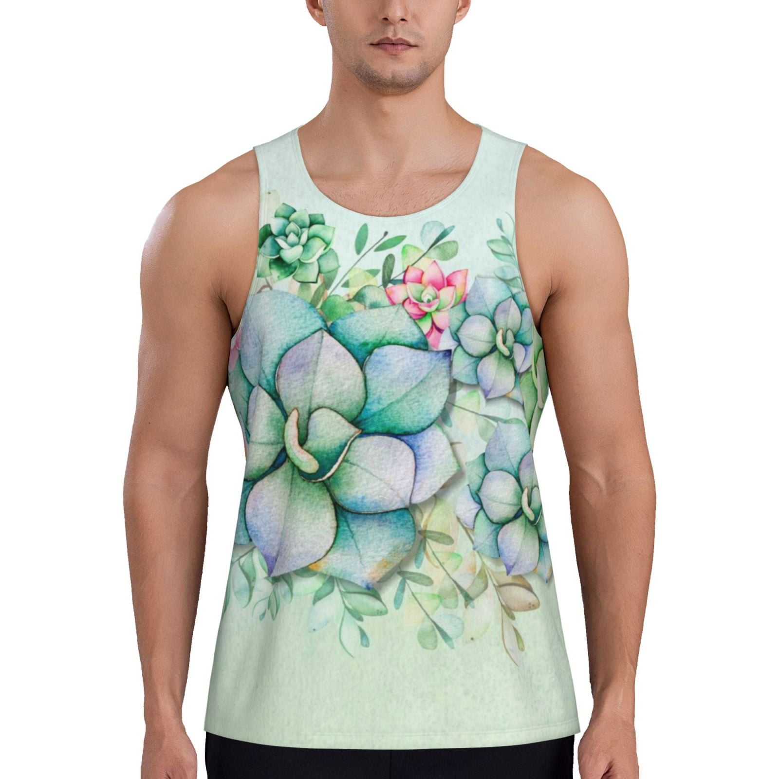 Pofeuu Succulent Print Men #39 s Workout Tank Tops Sleeveless Muscle Gym
