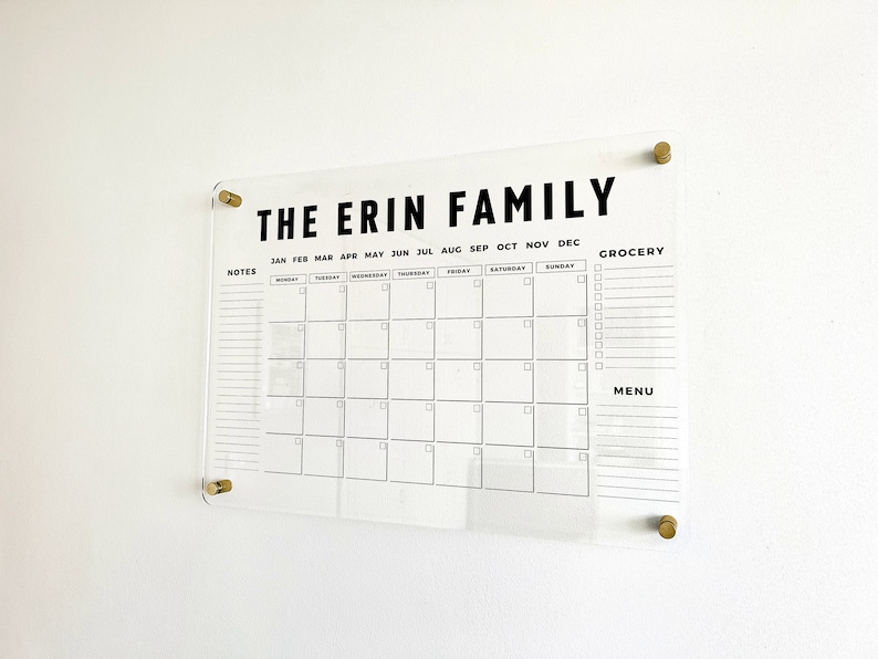 PERSONALIZED Acrylic Family Planner Dry Erase Monthly Calendar Etsy