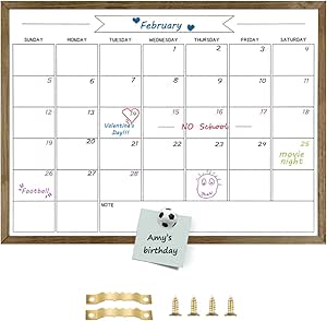 Amazon com : TORASO Dry Erase Monthly Calendar Board Solid Wood Frame