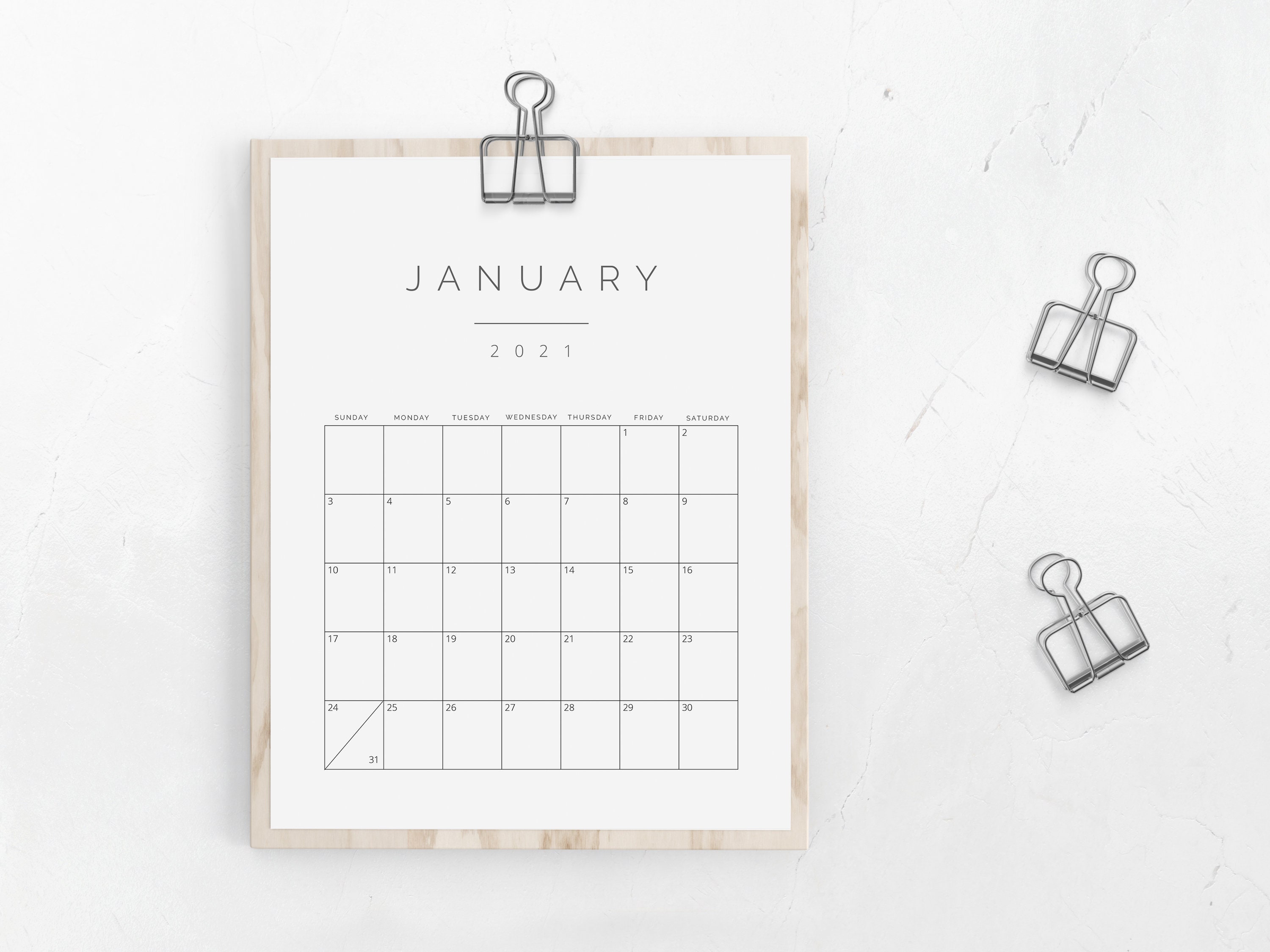 Editable Calendar Minimal Calendar 2021 Sunday Start Etsy