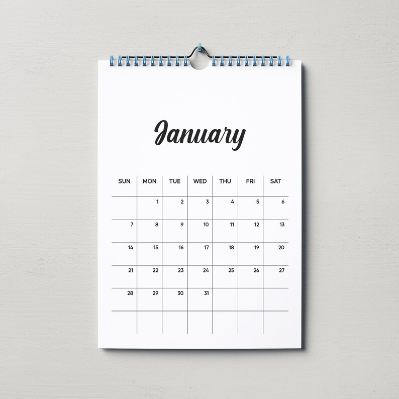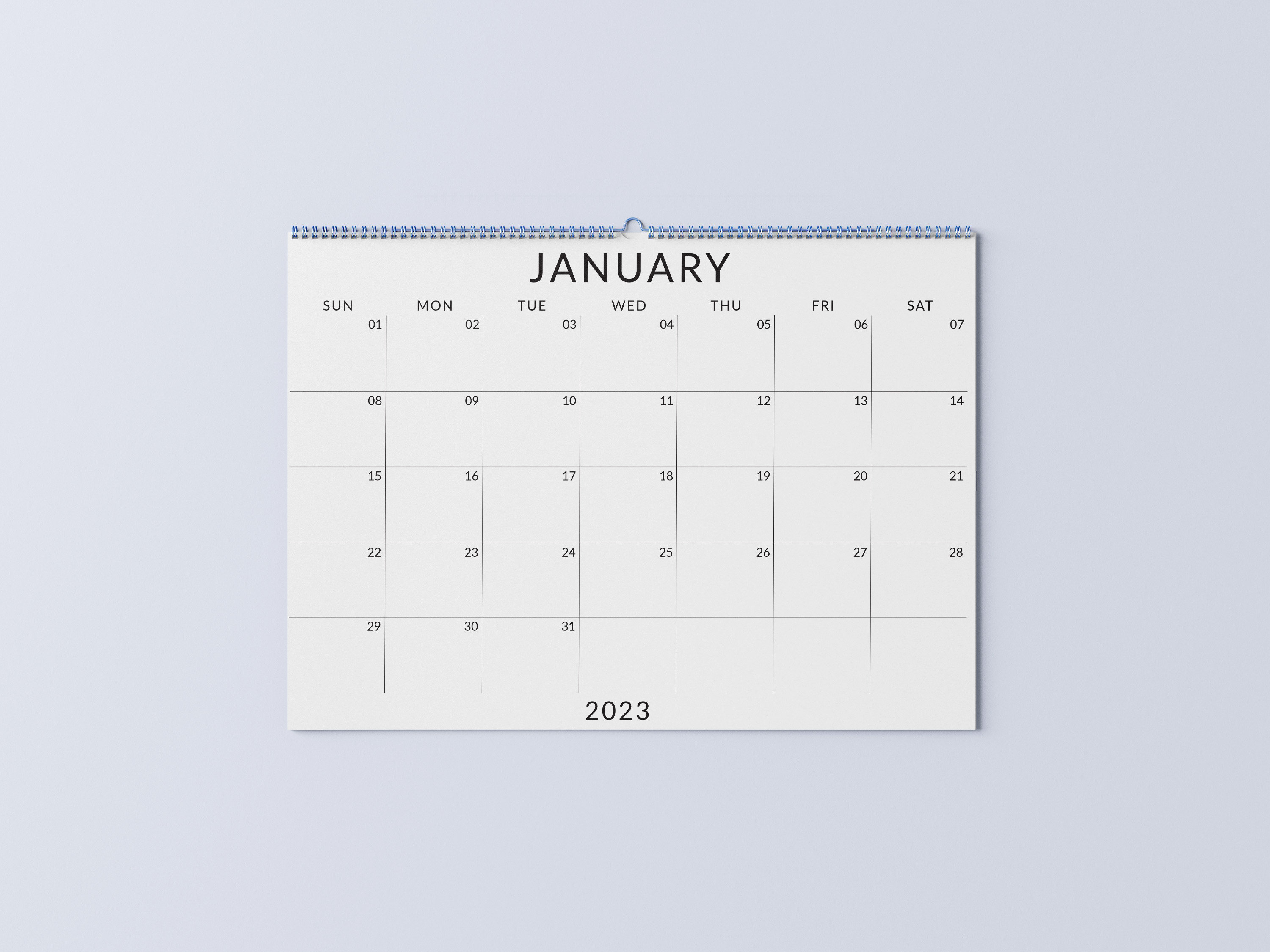 Start Any Month Wall Calendar A4 Monochrome With Clip
