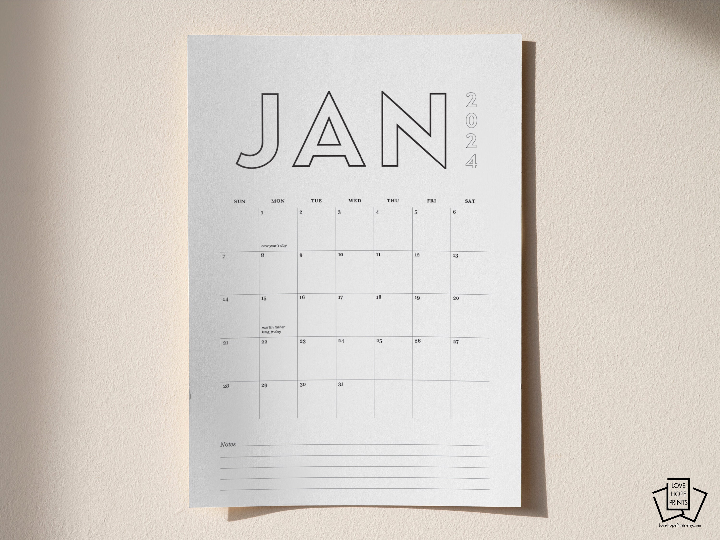 2023 2024 Minimalist Calendar Big Wall Calendar Printable Monthly