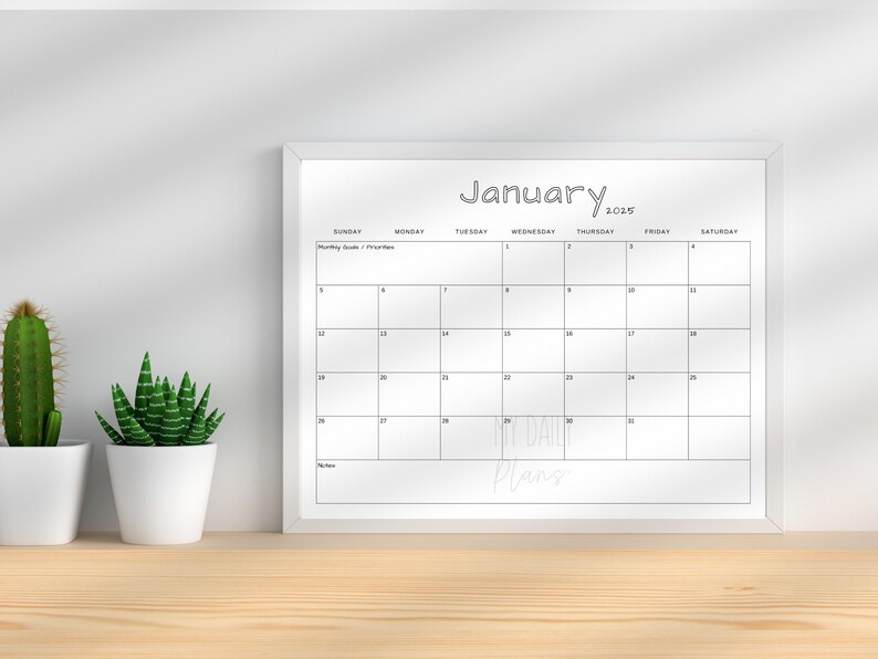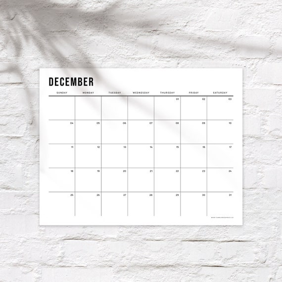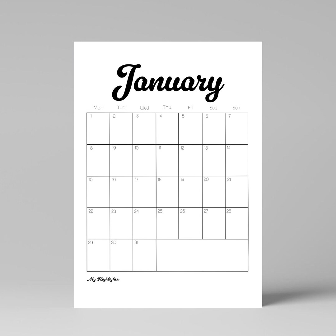 Blank Minimal Design Monthly Calendar Undated Calendar Template Size