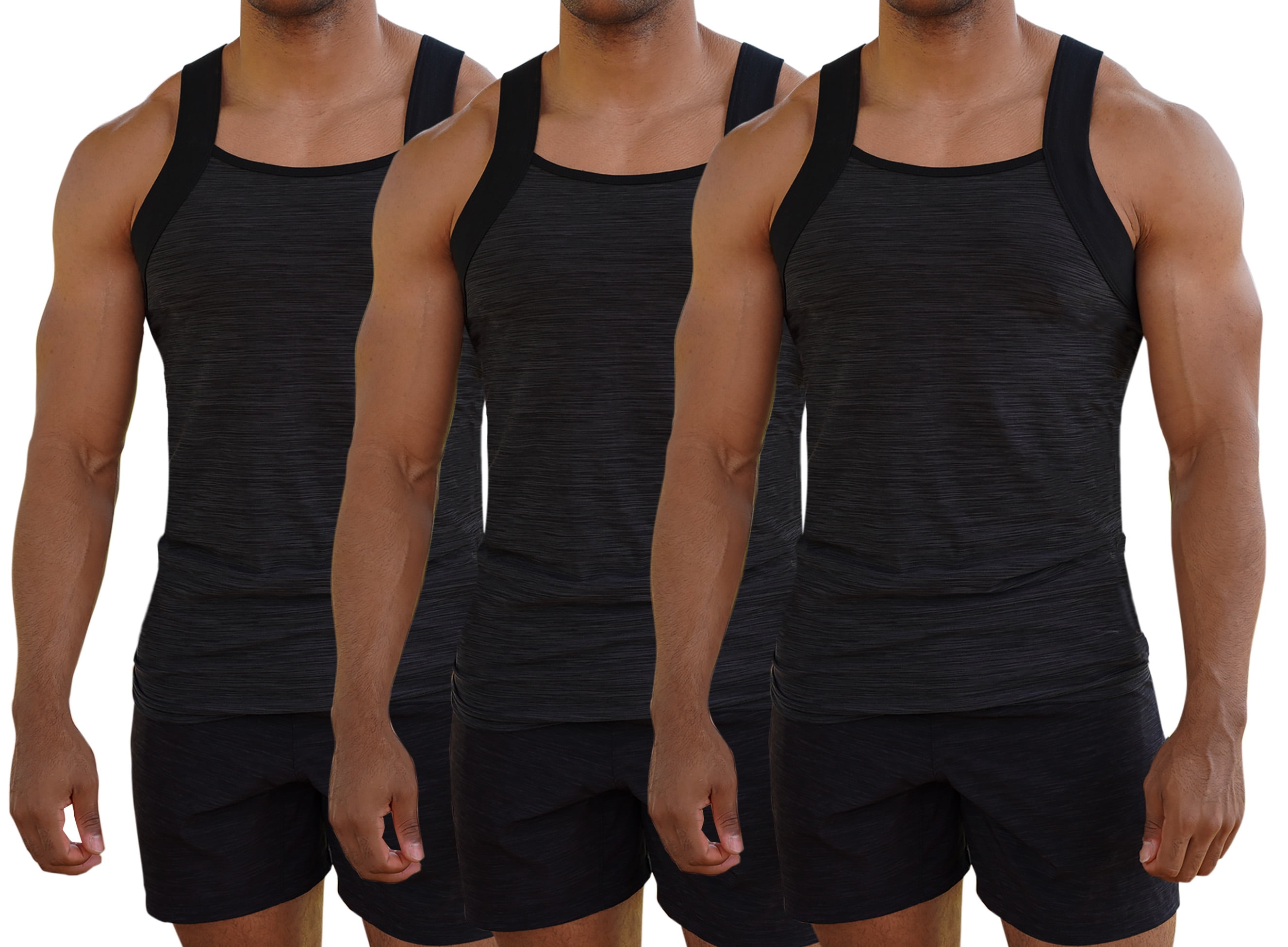 Different Touch Men #39 s 3 Pack Dry Fit Square Cut Tank Tops Walmart com