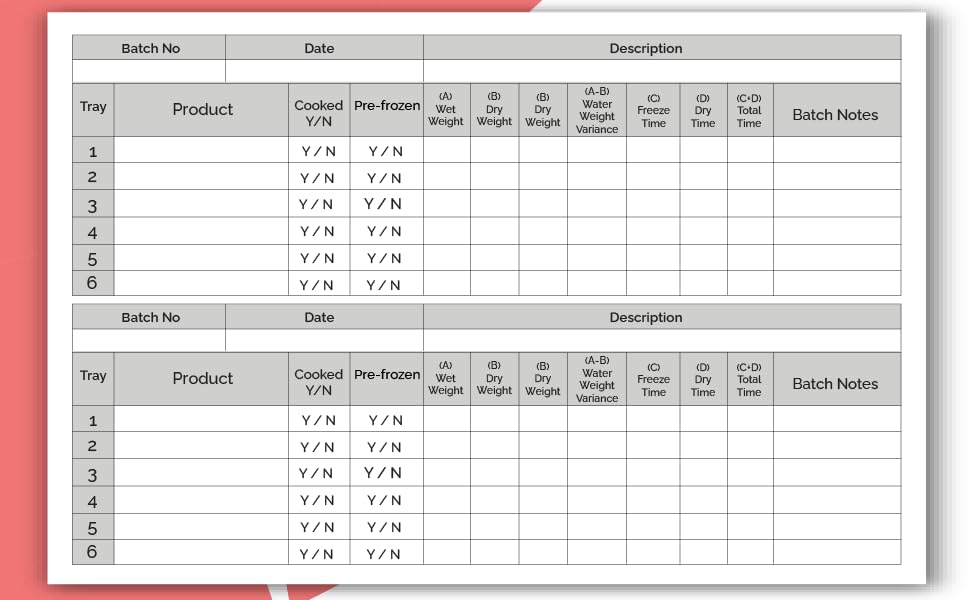 Freeze Dryer Food Log for Recording Your Freeze Drying Activities