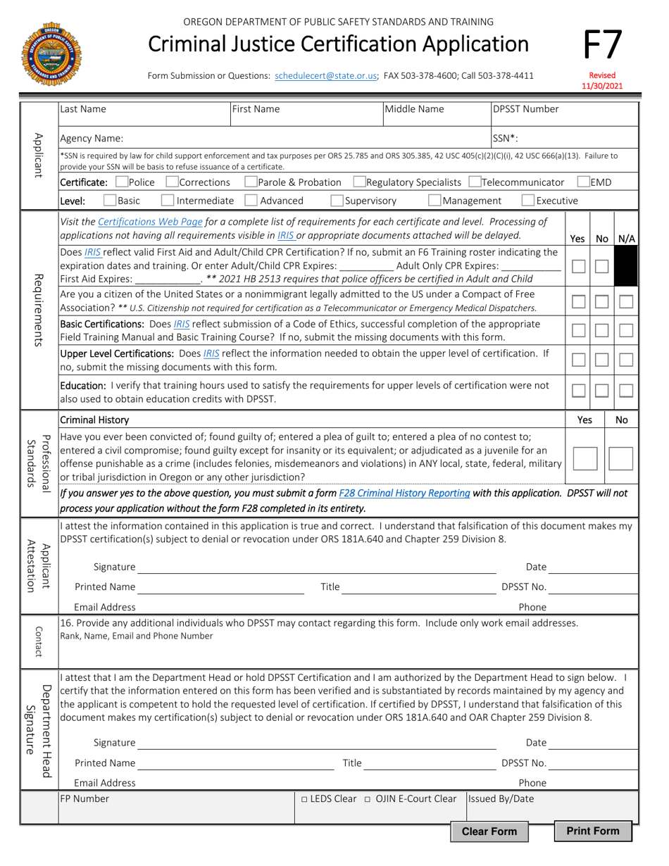 Form F7 Fill Out Sign Online and Download Fillable PDF Oregon