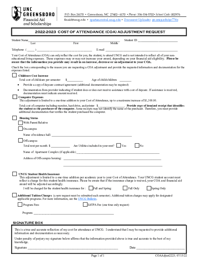 Fillable Online 2223 Cost of Attendance Adjustment Form Spartan