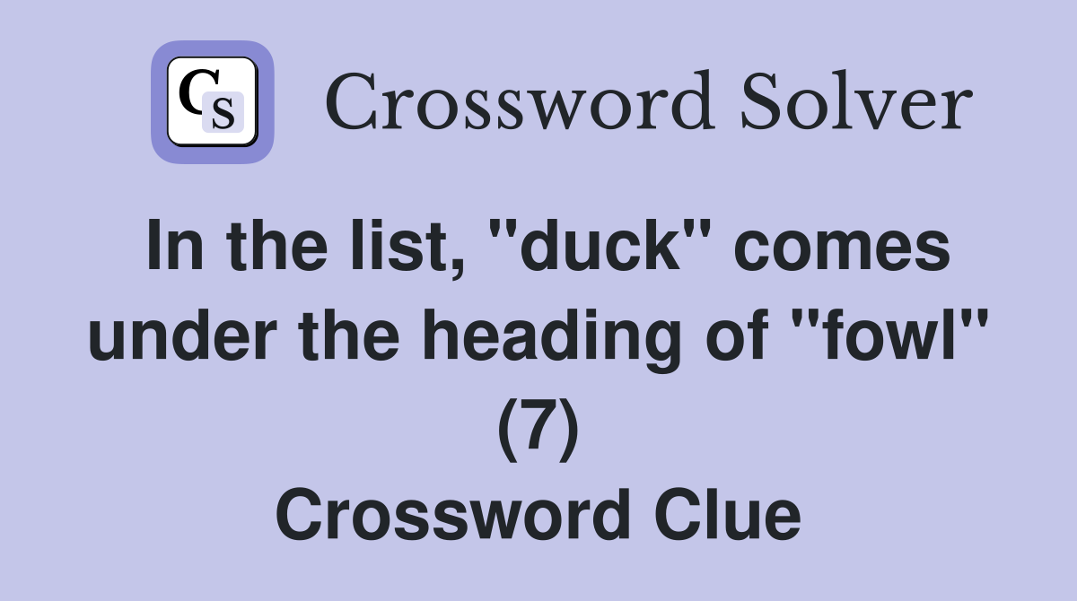 In the list quot duck quot comes under the heading of quot fowl quot (7) Crossword