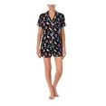 CUDDL DUDS Sets Black Knit Elastic Band Printed Short Sleeve V Neck