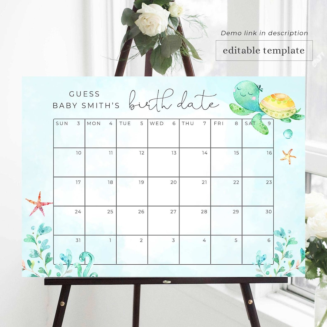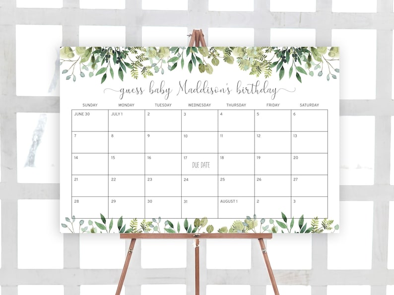 Greenery Baby Due Date Prediction Calendar EDITABLE Template Etsy
