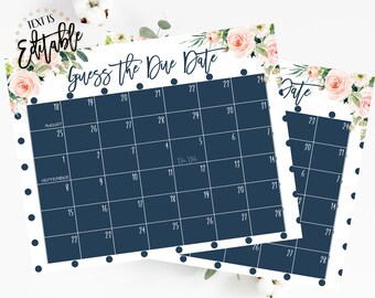 Editable Baby Due Date Calendar Game Baby Shower Game Due Date