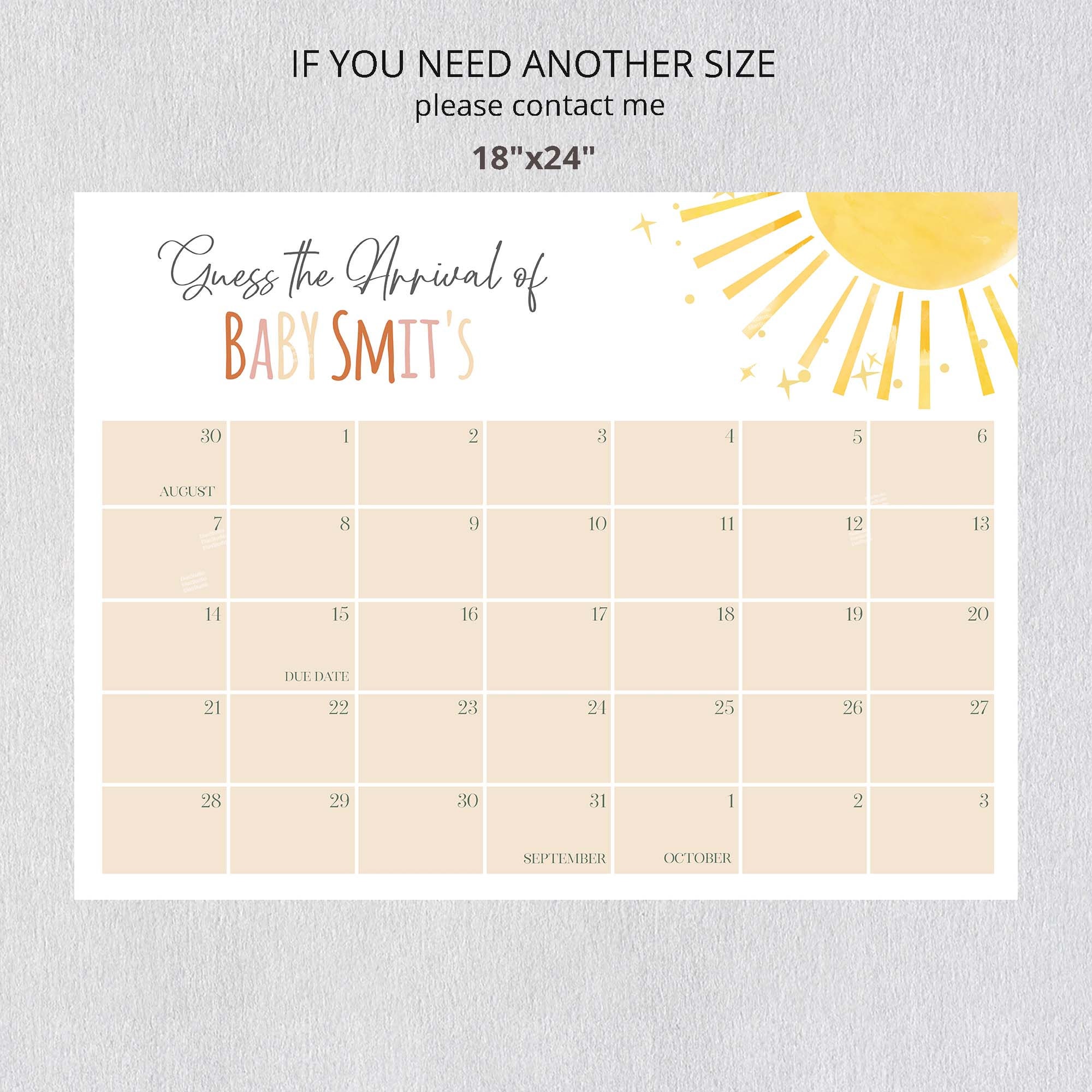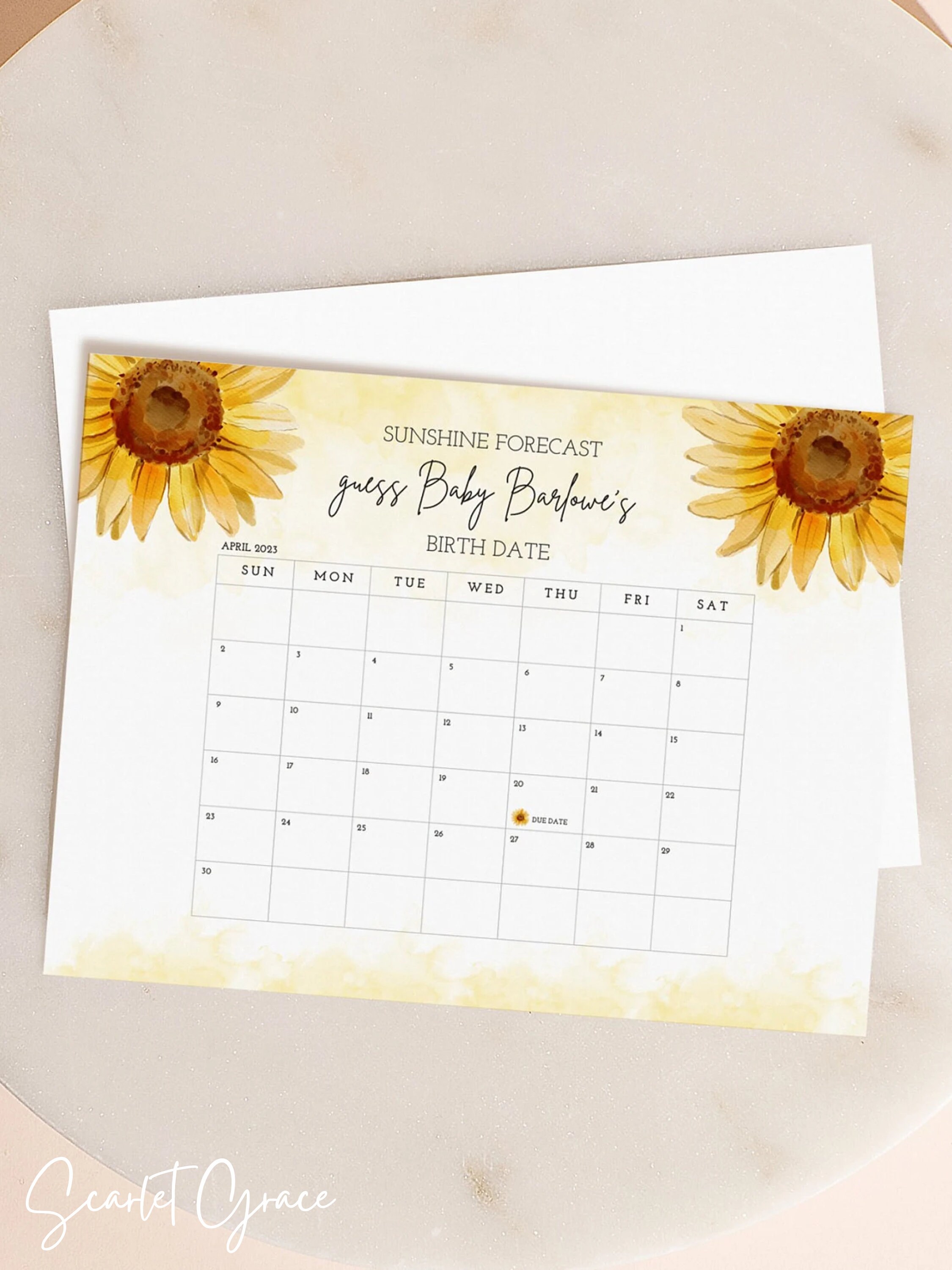 Due Date Prediction Calendar Sunshine Baby Shower Set a Etsy
