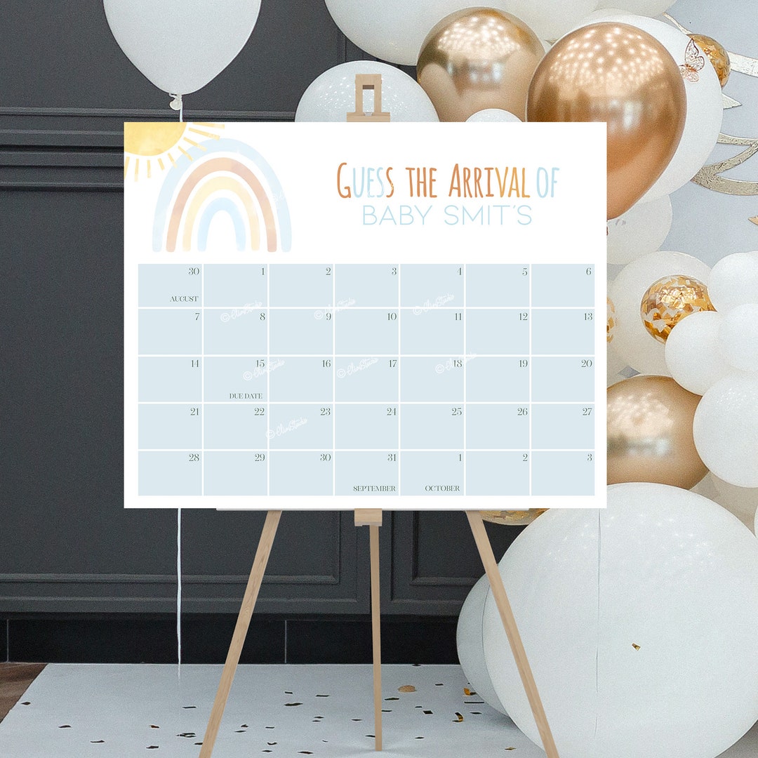 Editable Due Date Prediction Calendar Boho Pastel Rainbow Baby Shower