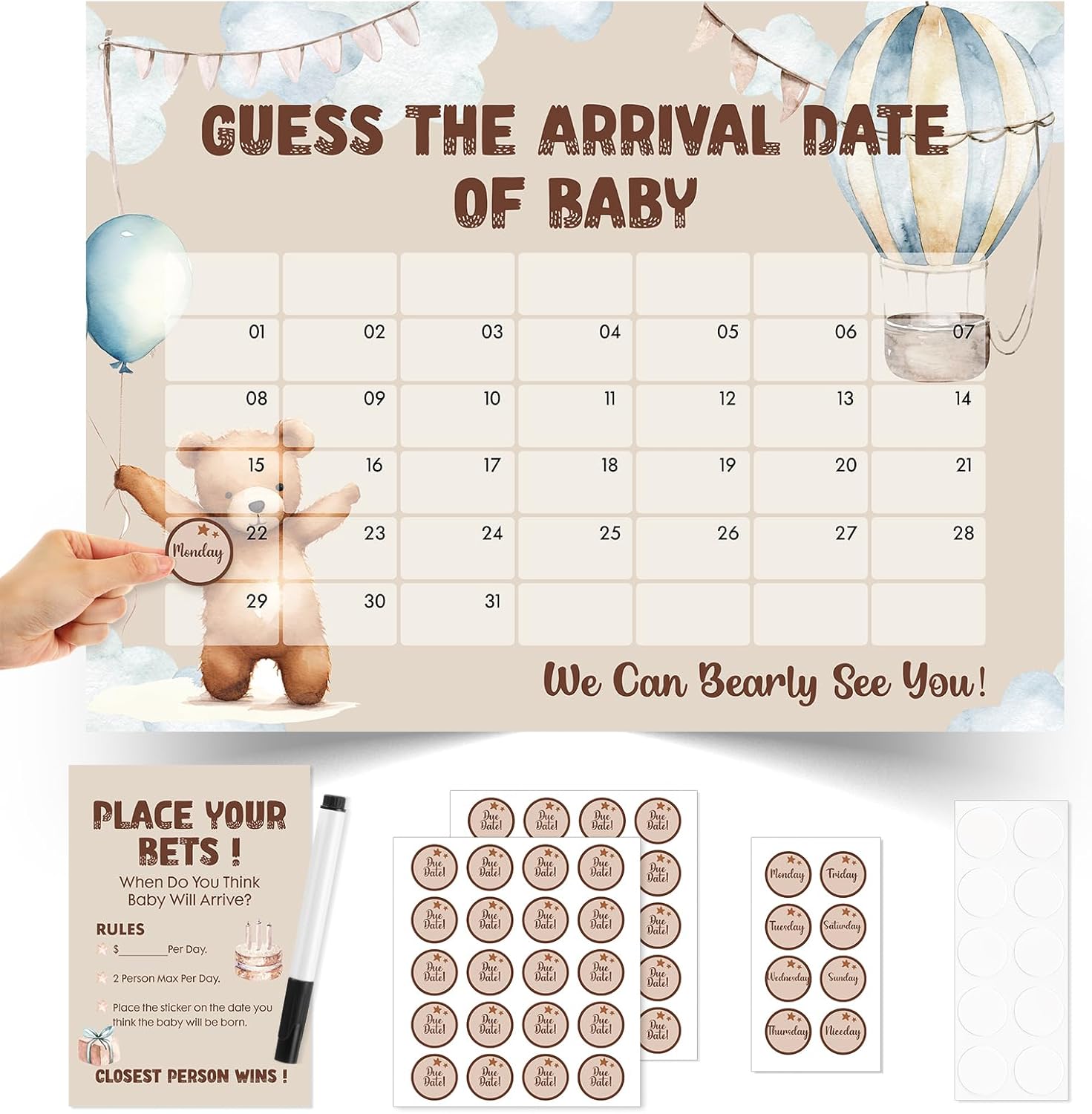 Amazon com: Spakon Bear Themed Baby Shower Due Date Calendar Baby