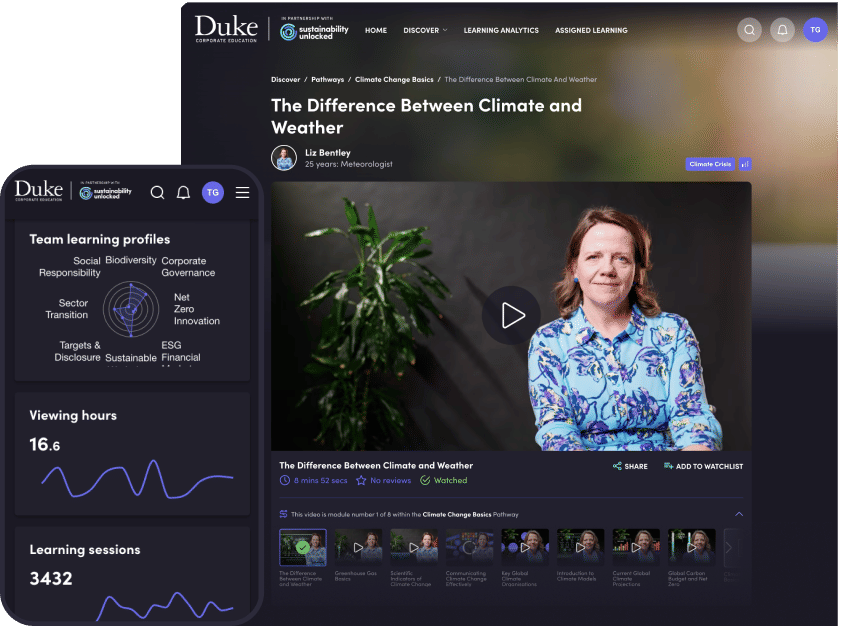 Search our courses by category topic Duke CE Sustainability Unlocked