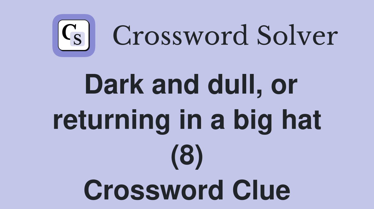 Dark and dull or returning in a big hat (8) Crossword Clue Answers