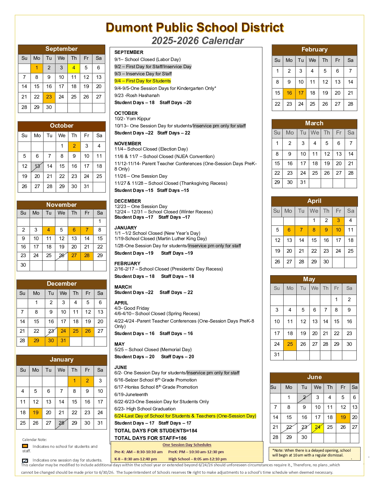 Dumont Public Schools Calendar 25 26 Revised PDF EduCounty