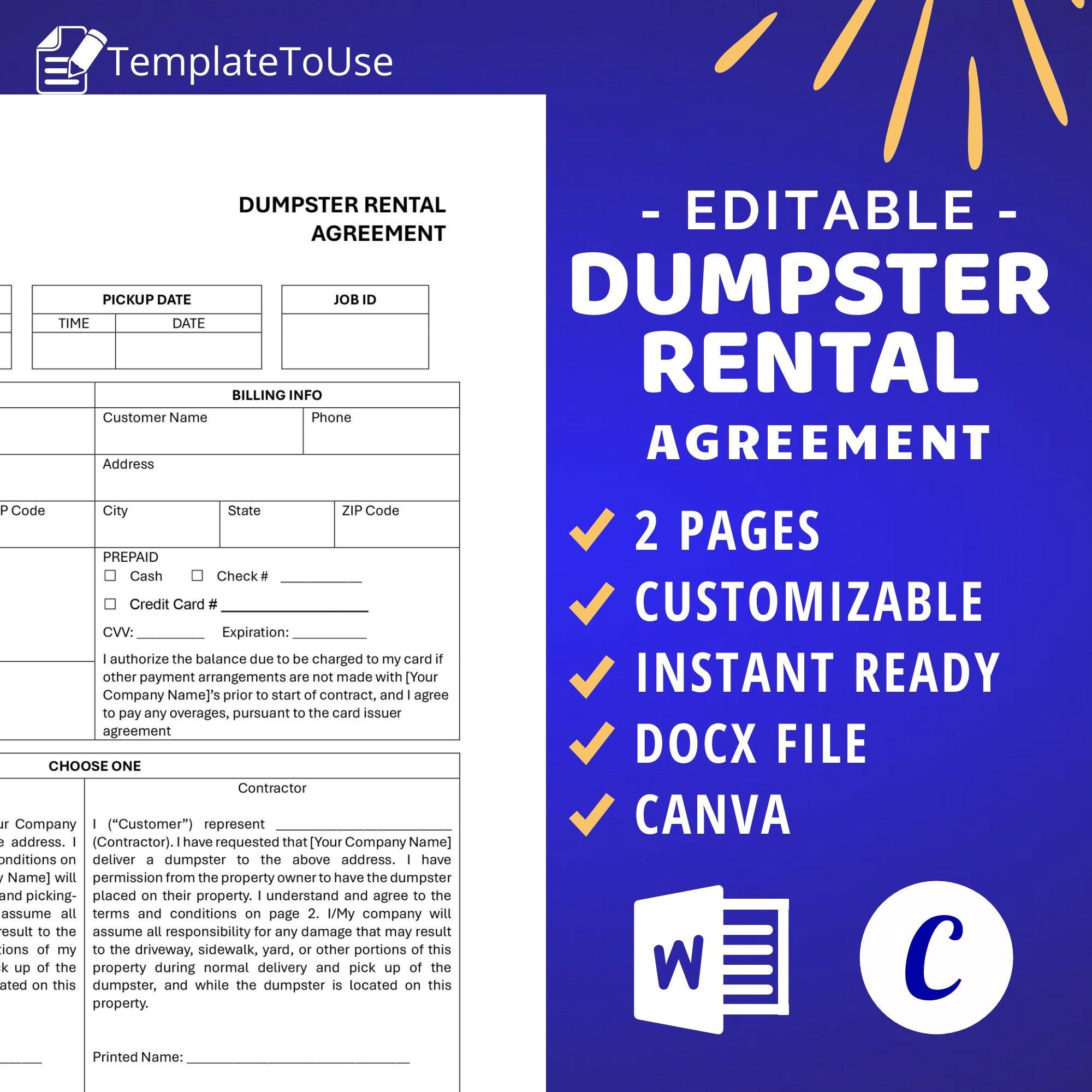 Dumpster Rental Agreement Template Instant Download Editable Contract