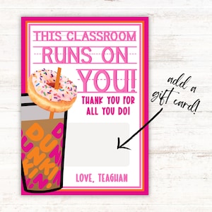 Teacher Dunkin Donuts Gift Card Holder (printable) Coffee Gifts for