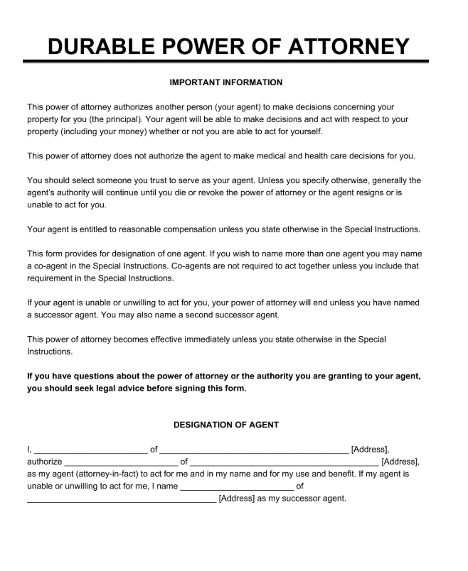 Durable Financial Power of Attorney Template POA Form Financial Power