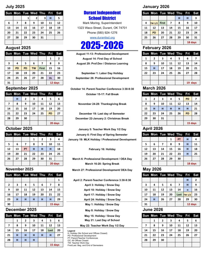 Durant Isd Calendar