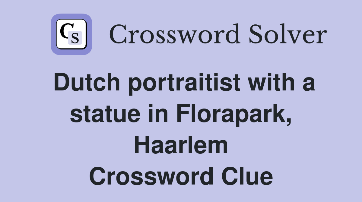 Dutch portraitist with a statue in Florapark Haarlem Crossword Clue