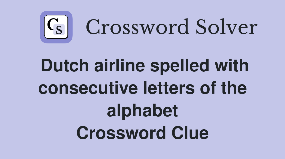 Here are some of the images for Dutch Airline Crossword Clue that we found in our website database.